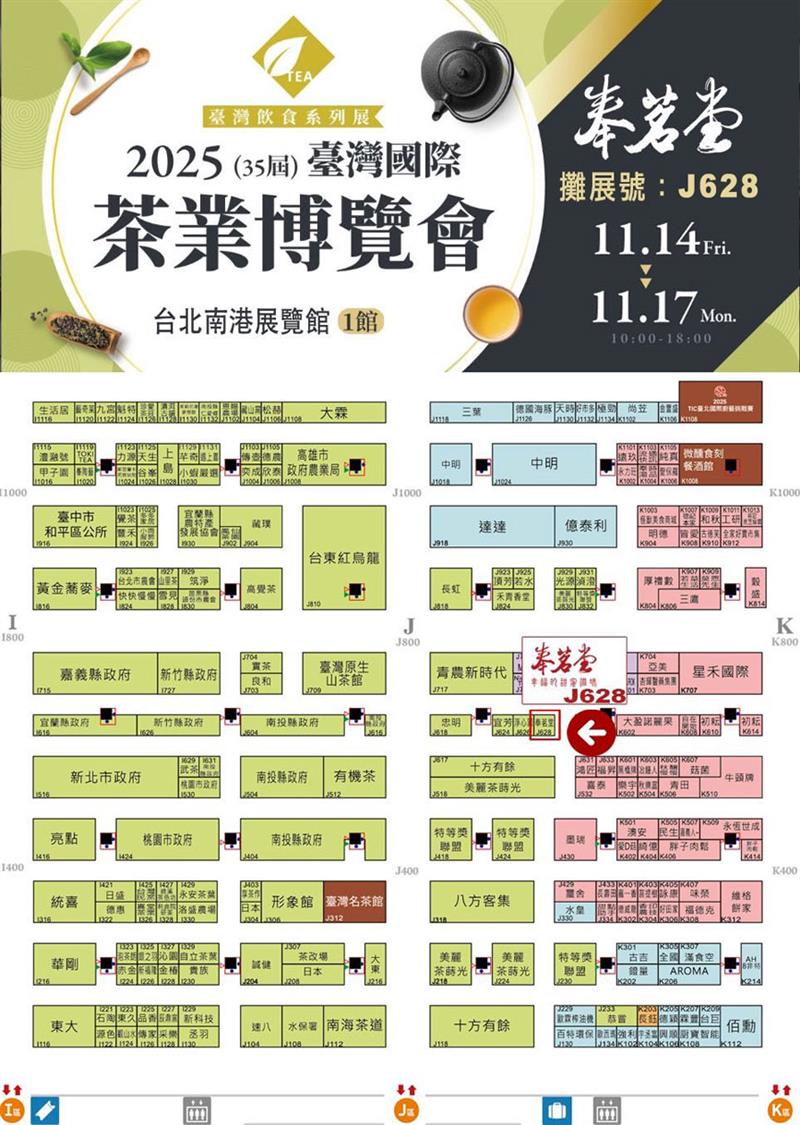 11/14~11/17南港展覽館一館奉茗堂的展位在『J628』